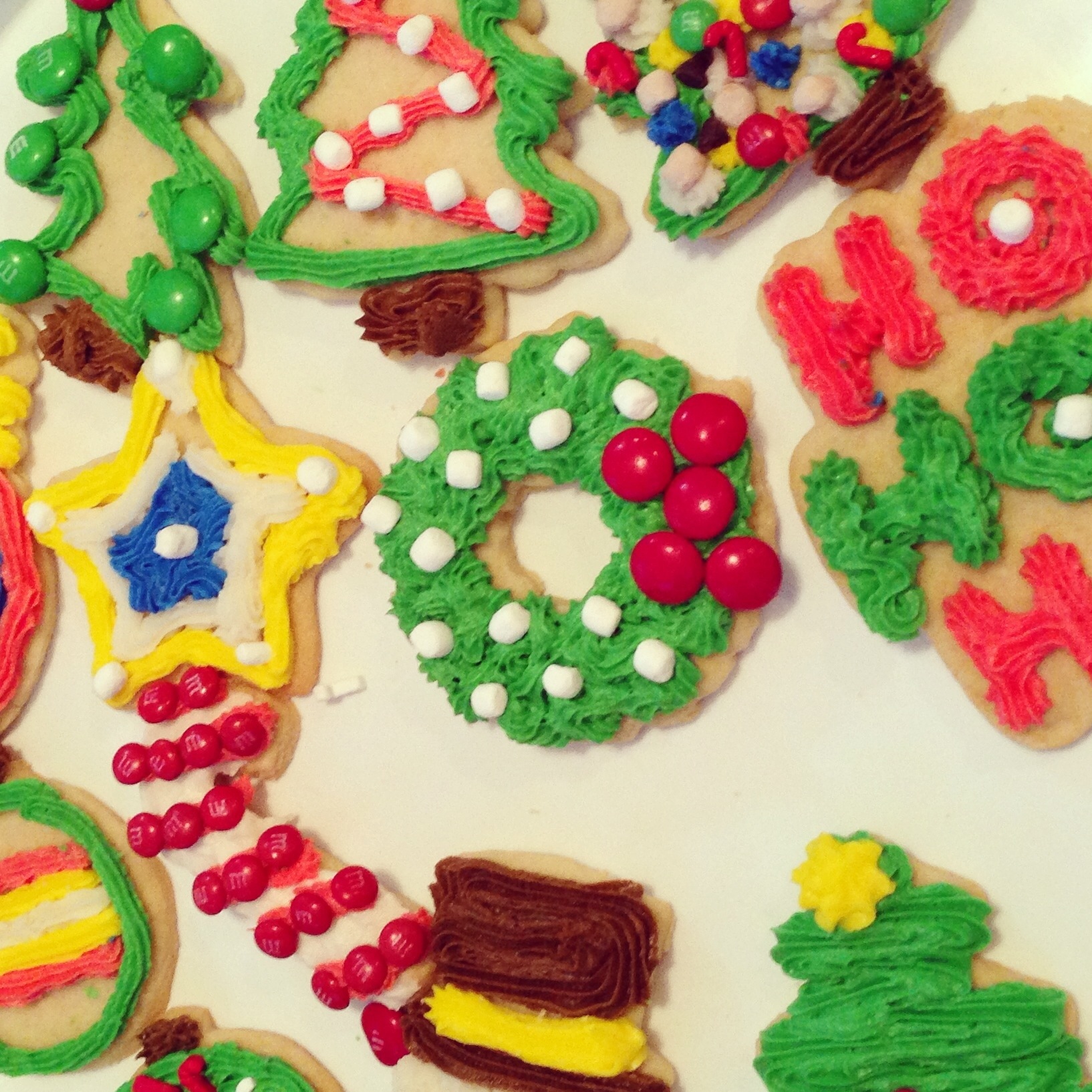 Lots of green icing on Tiffany’s Christmas cookies.